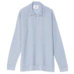 Bonsai Schlüsselloch-Langarm-Polo blau gestrickt