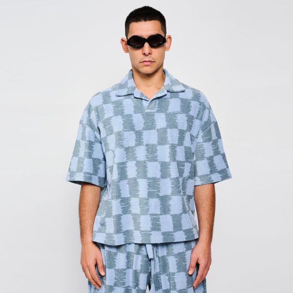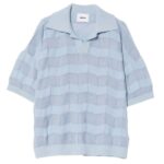 Schlüsselloch-Langarm-Polo blau gestrickt