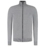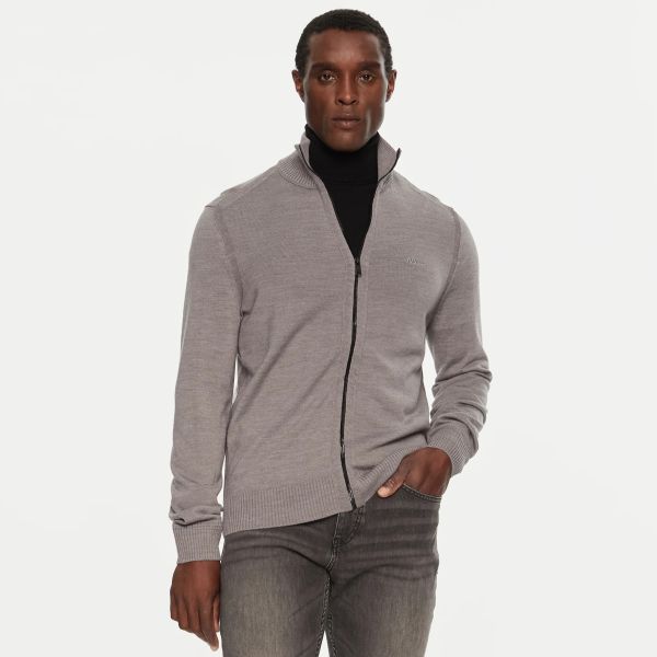 • Die graue Strickjacke von Boss ist aus Wolle und Acryl gefertigt.