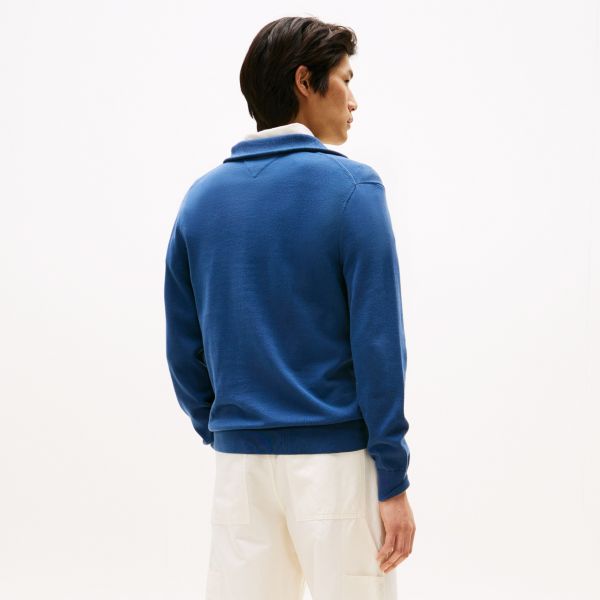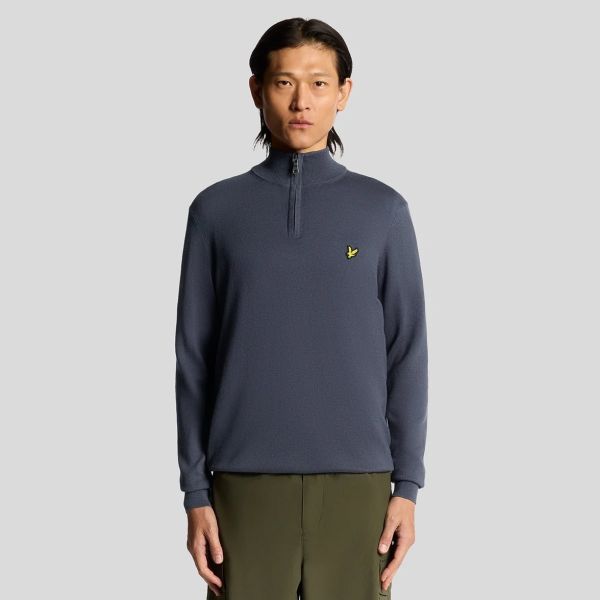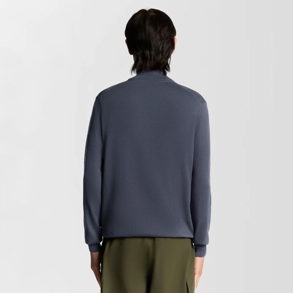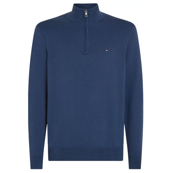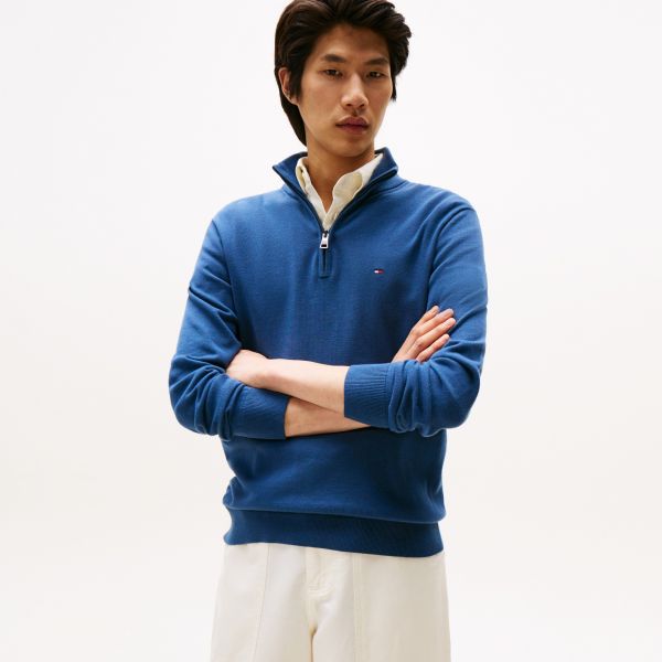 Cotton Merino Quarter-Zip Pullover Dunkelblau