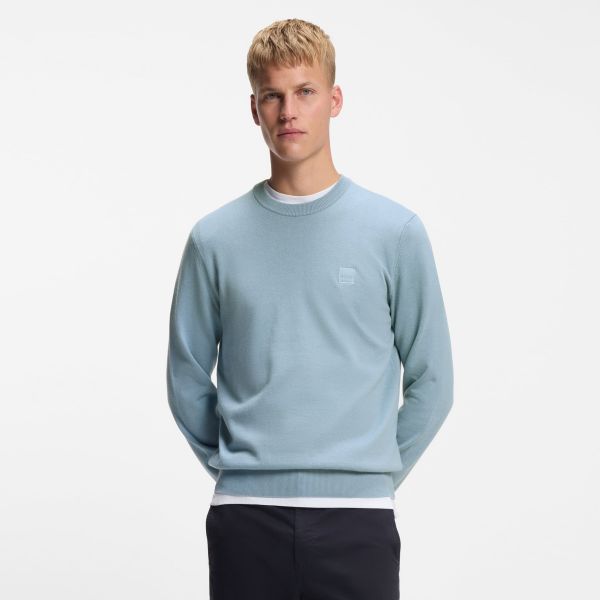 • Boss Pullover in der Farbe hellblau ist aus Baumwolle und Wolle hergestellt.