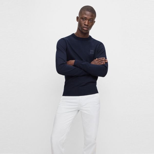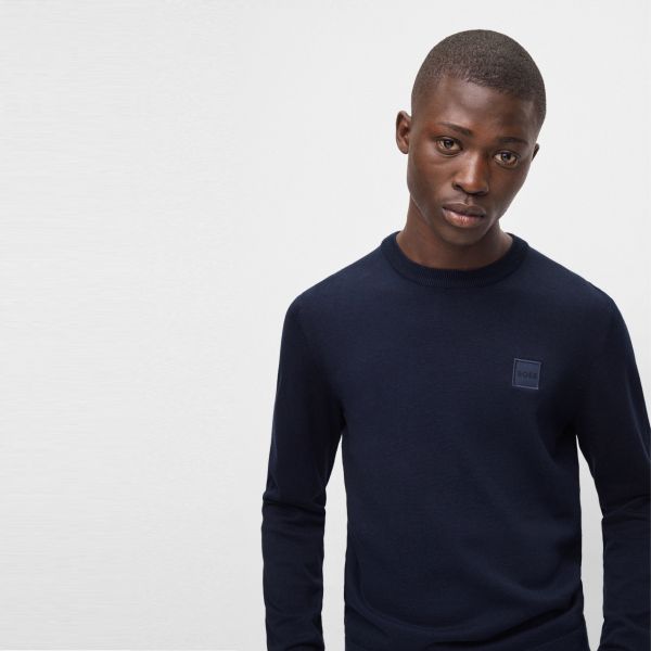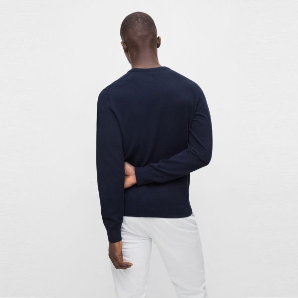 • Der navyfarbene Pullover von Boss ist aus Baumwolle und Wolle gefertigt.