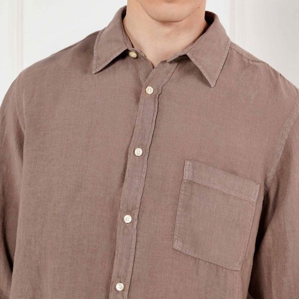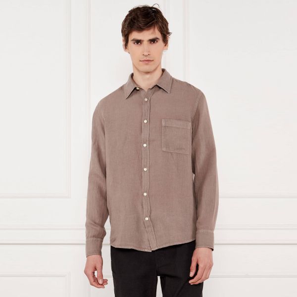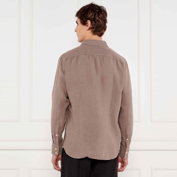• Boss Hemd in brauner Farbe ist aus Leinen gefertigt.