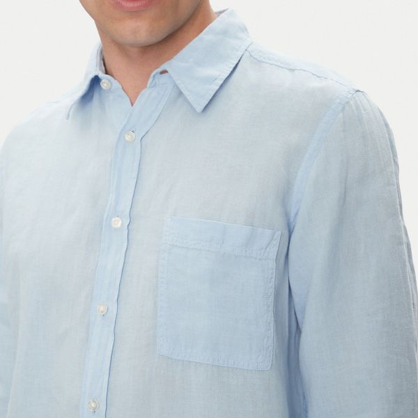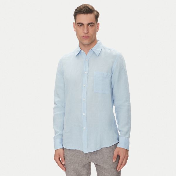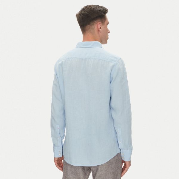 • Boss Hemd in der Farbe hellblau ist aus Leinen gefertigt.