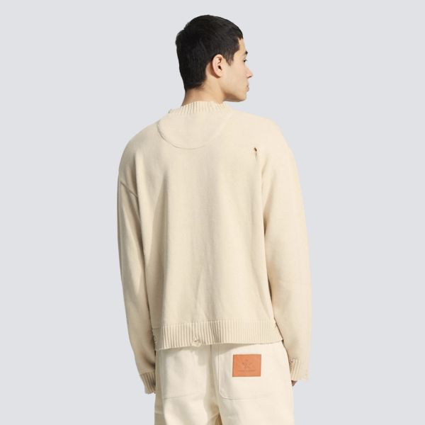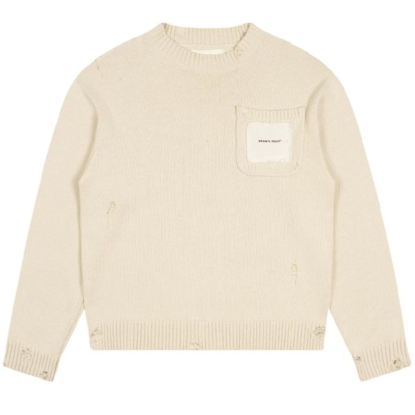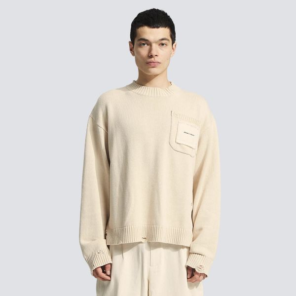 Distressed Brusttaschen-Strickpullover Beige