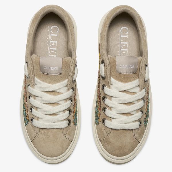 • Der Trainer von Cleens in der Farbe beige ist aus Leder gefertigt.