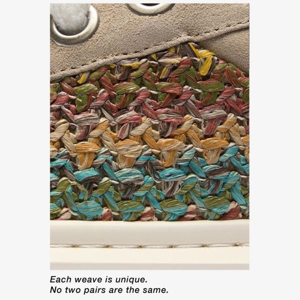 • Hergestellt aus italienischem Wildleder und geflochtenem Raffia-Seil.