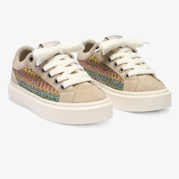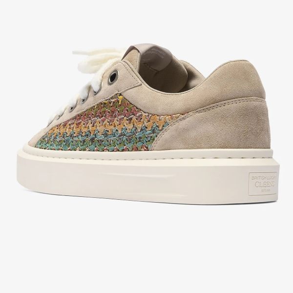 • Der Trainer von Cleens in der Farbe beige ist aus Leder gefertigt.