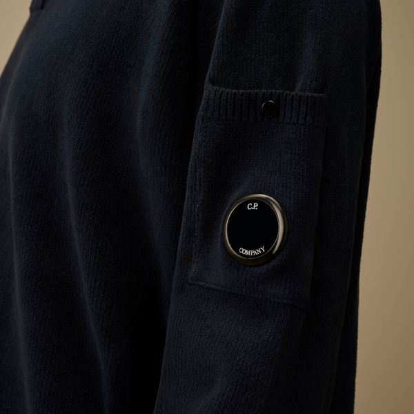 CP Company Chenille-Linse stricken Polo Pullover Marine