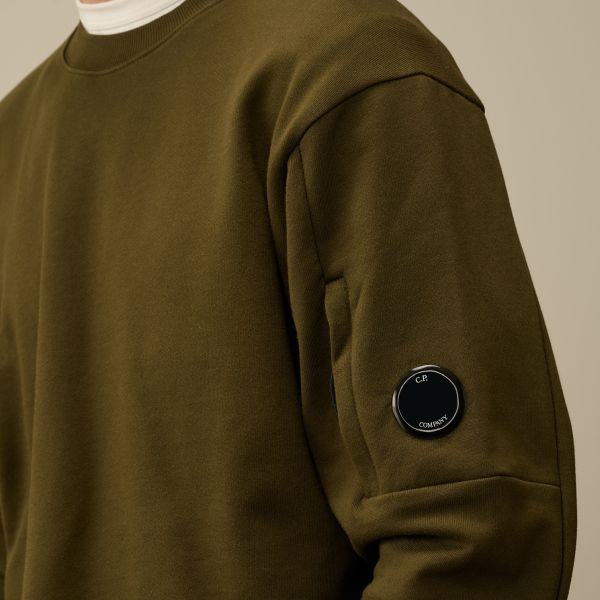 CP Company Diagonal Raised Fleece Lens Pullover dunkelgrün