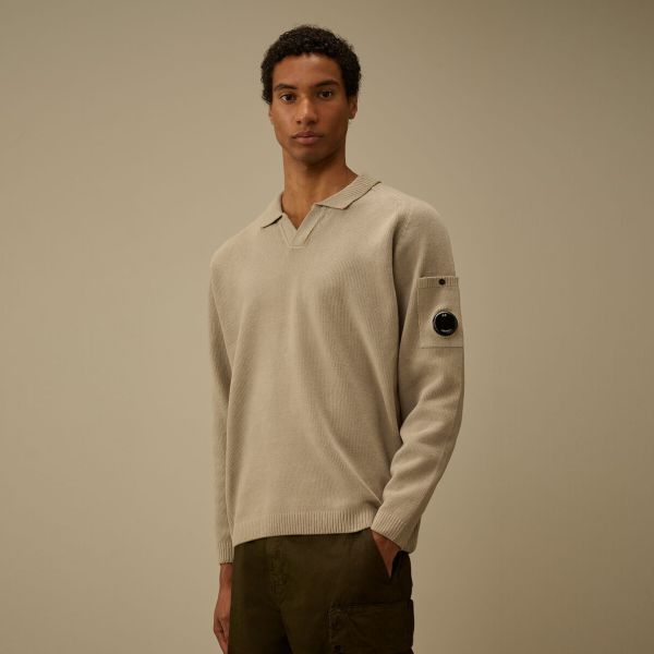 Chenille Lens Knit Polo Pullover Beige