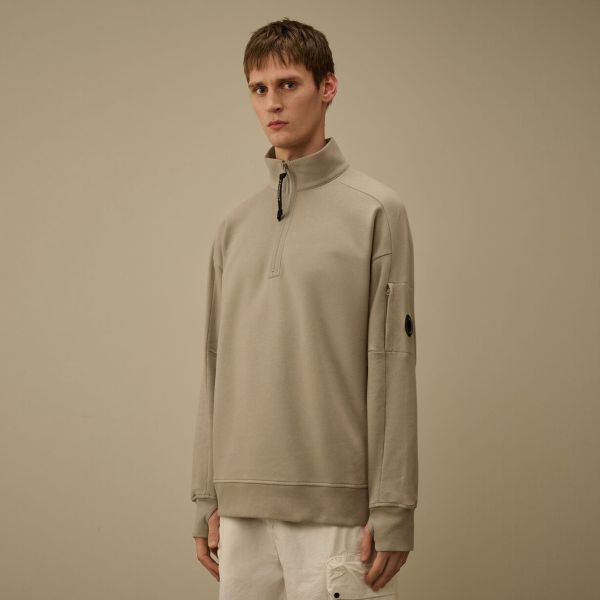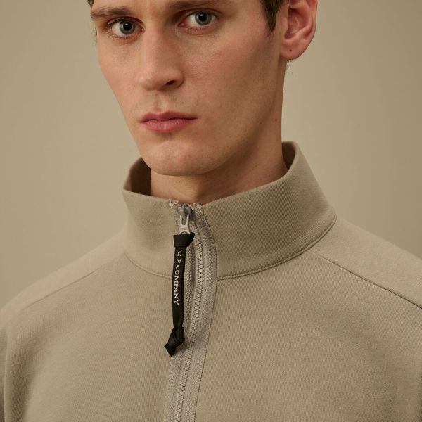 CP Company Diagonale angehoben Fleece-Objektiv halbe Zip Pullover Beige
