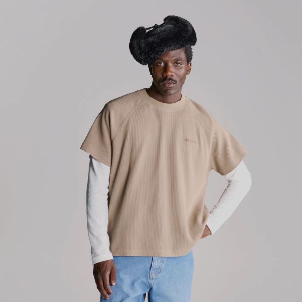 Waffle Boxy T-shirt Beige
