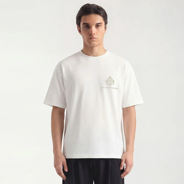 • T-Shirt mit Don't Waste Culture-Logoaufdruck auf Vorder- und Rückseite.