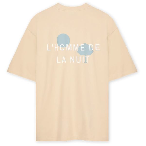• T-Shirt mit Don't Waste Culture 'L'Homme de la Nuit' Logoaufdruck auf Vorder- und Rückseite.