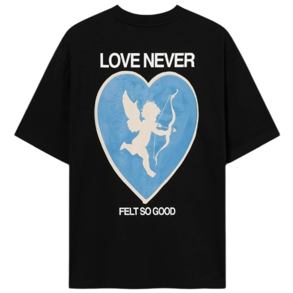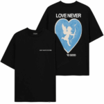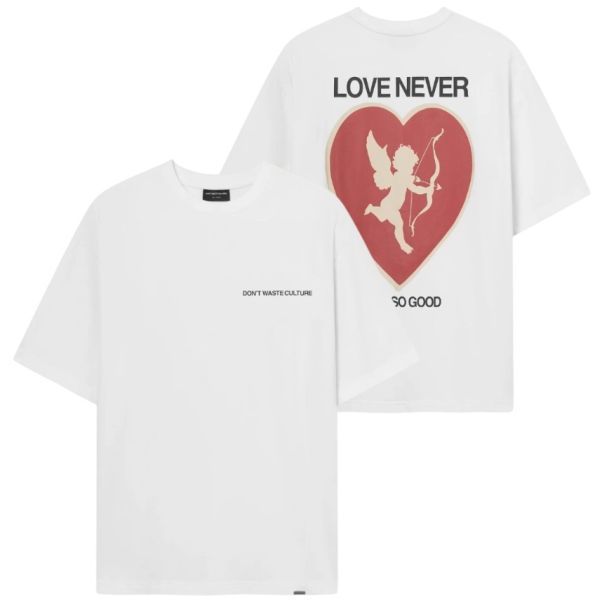 • T-Shirt mit Don't Waste Culture 'Love Never' Logo-Aufdruck auf dem Rücken.