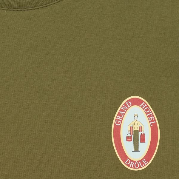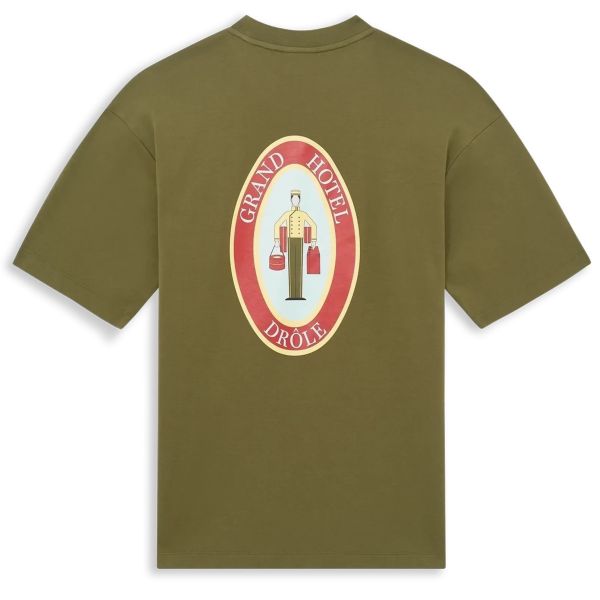 • T-Shirt mit Grand Hotel Drôle Logoaufdruck auf Vorder- und Rückseite.