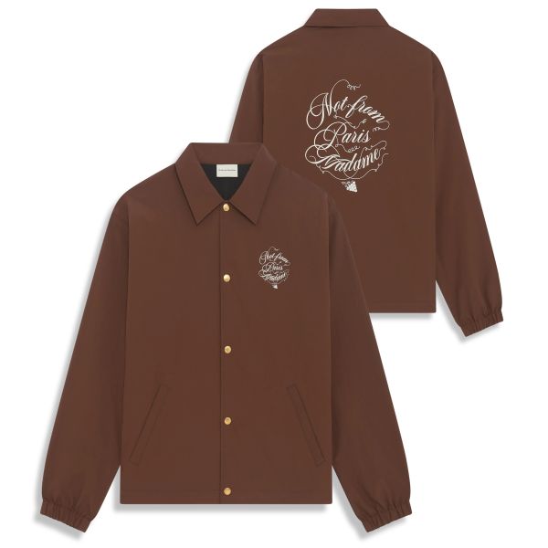 - Jacke mit signiertem NFPM-Logoaufdruck 'Not From Paris Madame Vignes' auf Vorder- und Rückseite.