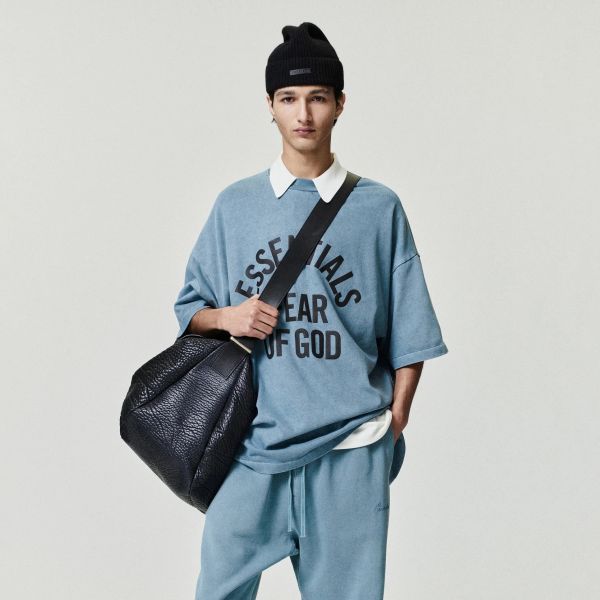 • T-shirt metFear of GodEssentials logoprint op de voorkant.
