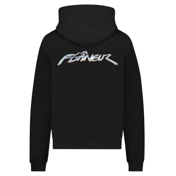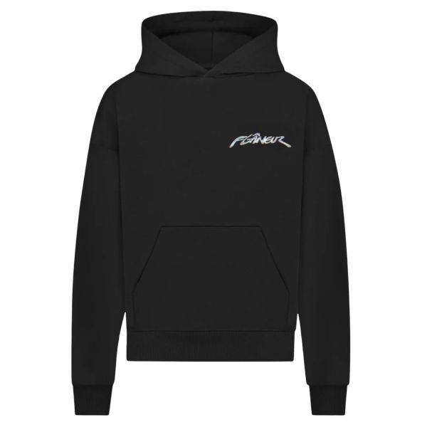 • Kapuzenpulli mit Flâneur 'Chrome' Logoaufdruck auf Vorder- und Rückseite.