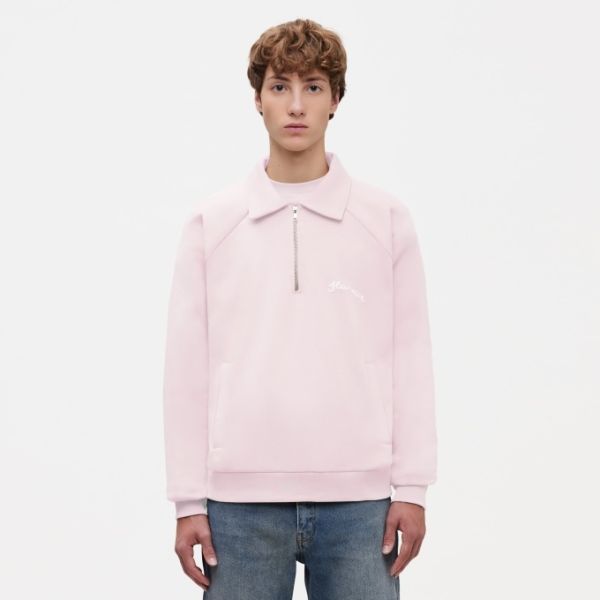 Flâneur Signature Raglan Pullover mit halbem Reißverschluss Rosa