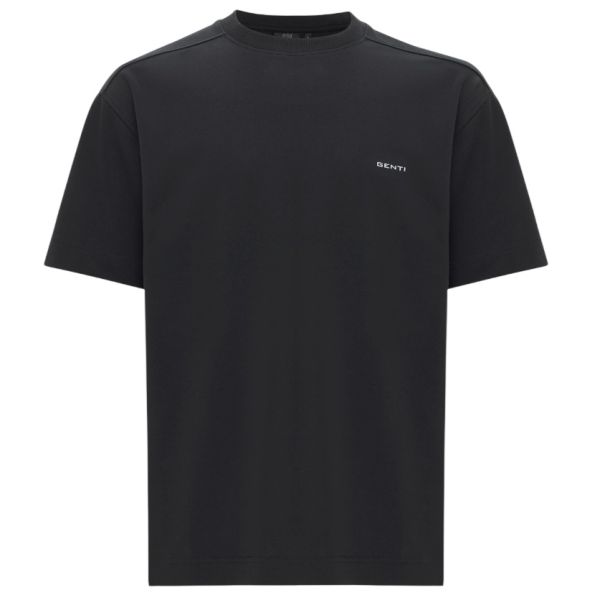 • Das T-Shirt von Genti in der Farbe schwarz ist aus Polyester und Baumwolle hergestellt.
