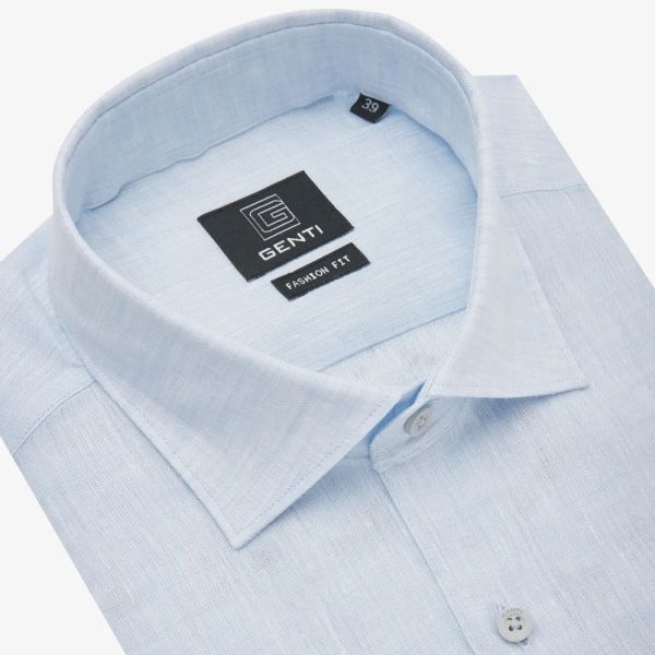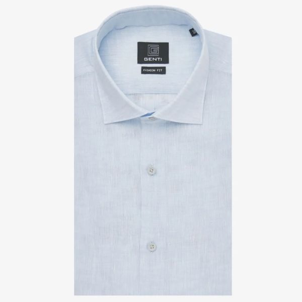 • Das Hemd von Genti in der Farbe hellblau ist aus Leinen gefertigt.