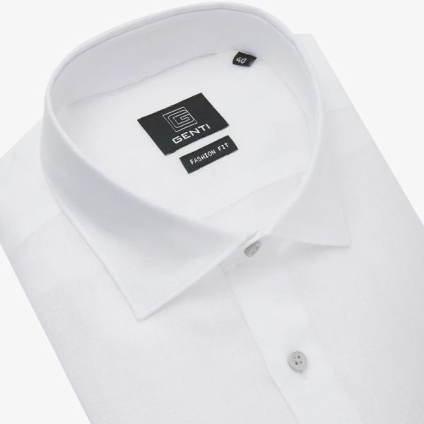 • Das weiße Hemd von Genti ist aus Leinen gefertigt.
