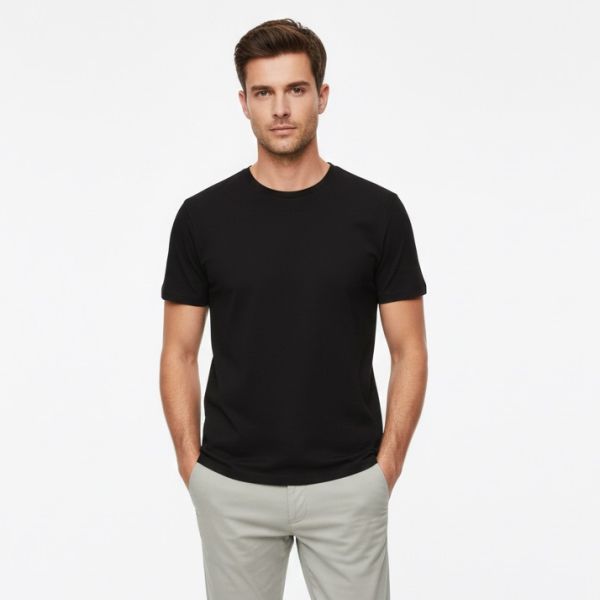 Schlankes Baumwoll-T-Shirt Schwarz