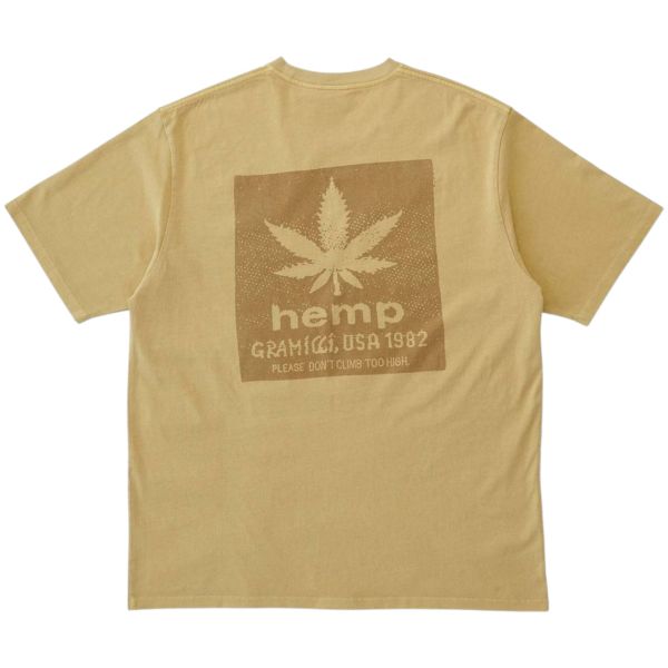 • T-Shirt mit Gramicci-Logoaufdruck 'Hanf' auf dem Rücken.