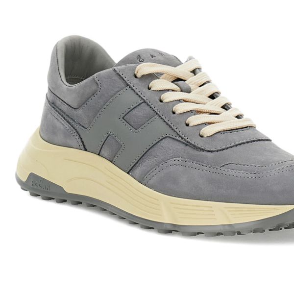 • Der graue Turnschuh von Hogan ist aus Nubukleder und Gummi gefertigt.