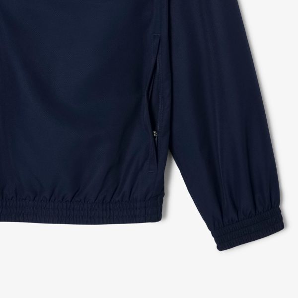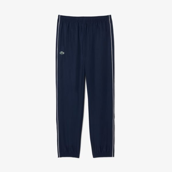 - Trainingspak met het iconische krokodillogo van Lacoste op de linkerborst en rechterpijp.
