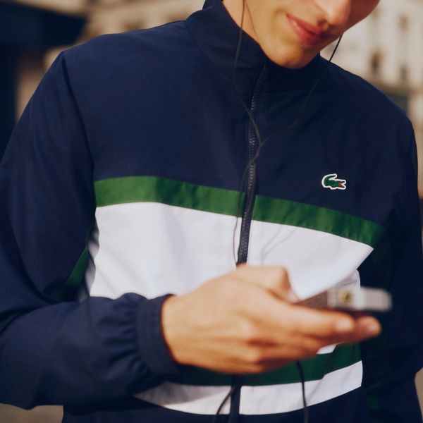• Trainingspak metLacoste striped logoprint rondom het jack.