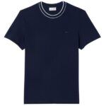 Lacoste Stretch Pique Striped Collar T-Shirt Marine