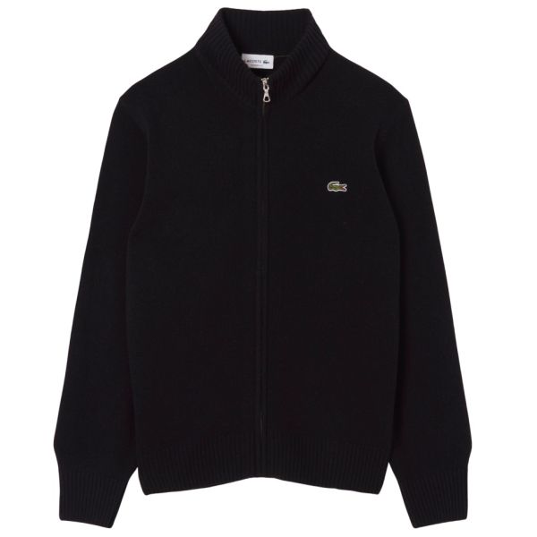 • Die schwarze Strickjacke von Lacoste ist aus Wolle gefertigt.