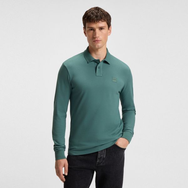 Baumwoll-Merino-Strick-Langarm-Polo Braun