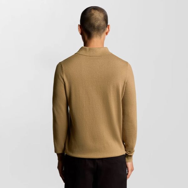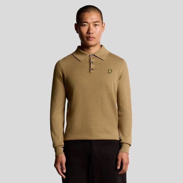 Lyle & Scott Baumwoll-Merino-Strick-Langarm-Polo Braun