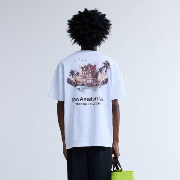 • T-Shirt mit New Amsterdam Surf Association 'Hibiscus' Logoaufdruck auf Vorder- und Rückseite.