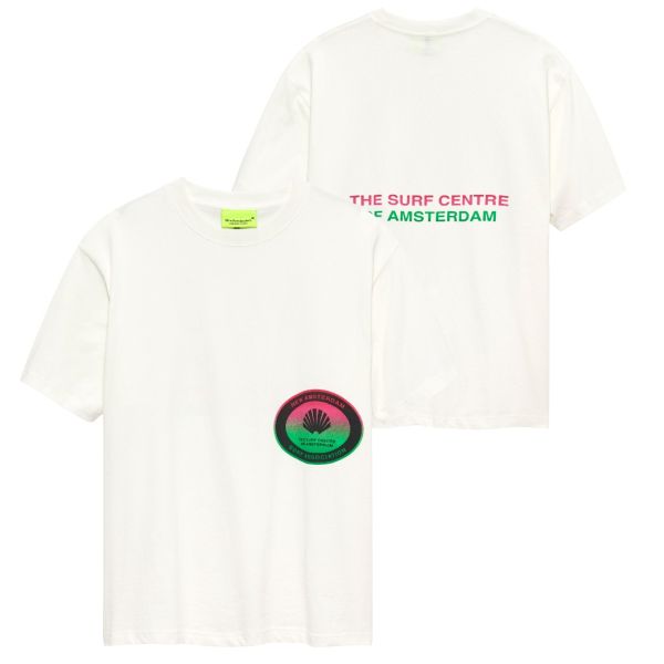 • T-Shirt mit New Amsterdam Surf Association 'Surf Centre' Logoaufdruck auf Vorder- und Rückseite.