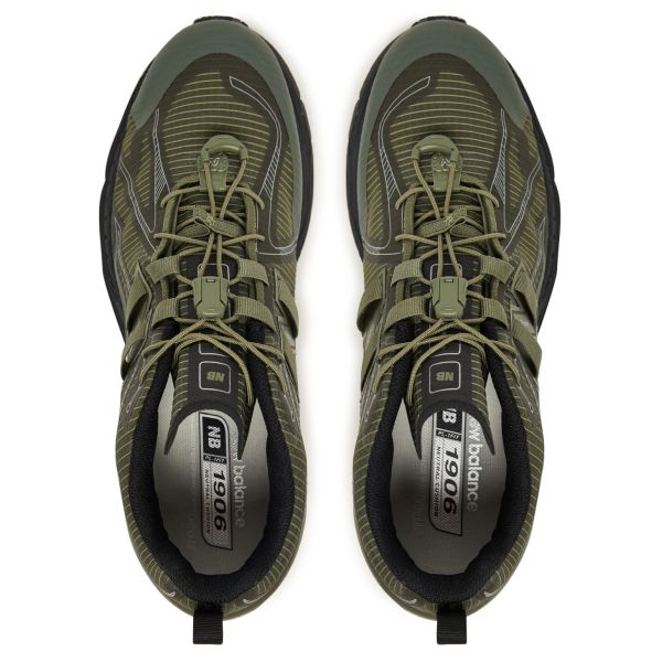 - Der dunkelgrüne Turnschuh von New Balance ist aus Synthetik, Textil und Gummi gefertigt.