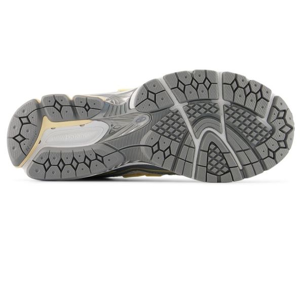 - Der graue Turnschuh von New Balance ist aus Leder, Textil und Gummi gefertigt.
