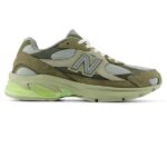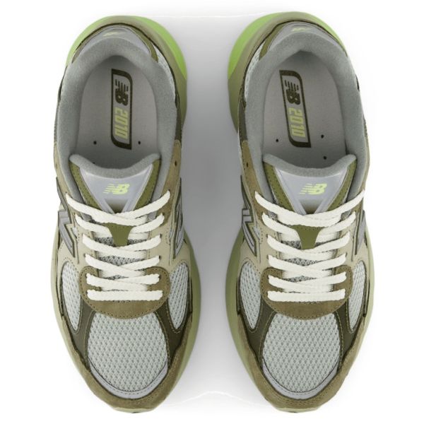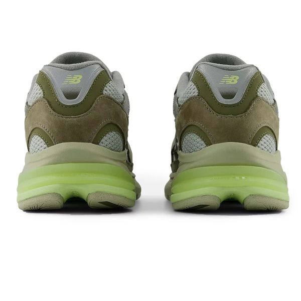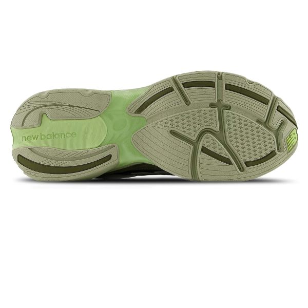 • Der dunkelgrüne Turnschuh von New Balance ist aus Leder und Textil gefertigt.