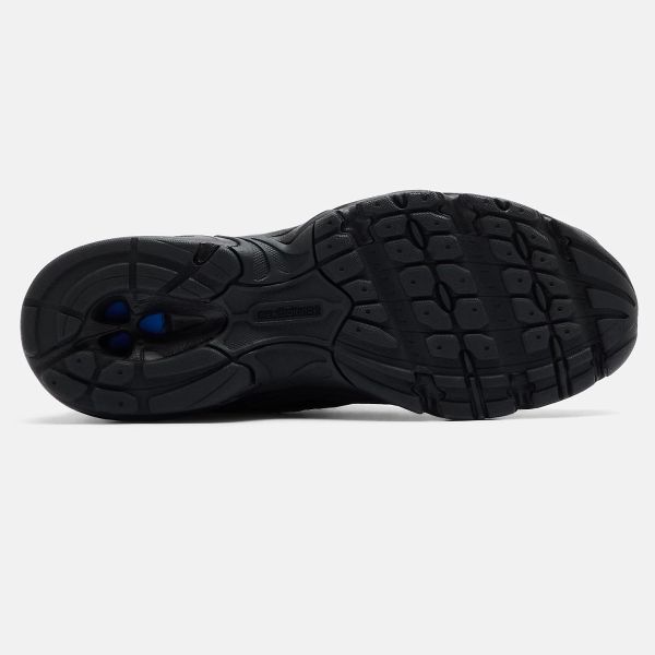 - Der schwarze Turnschuh von New Balance ist aus Leder, Textil und Gummi gefertigt.