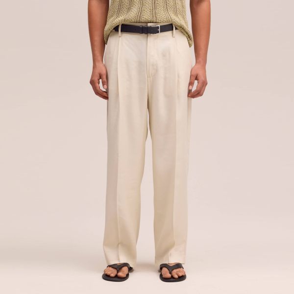 - NNs Hose.07 in der Farbe off white ist aus Viskose und Leinen gefertigt.