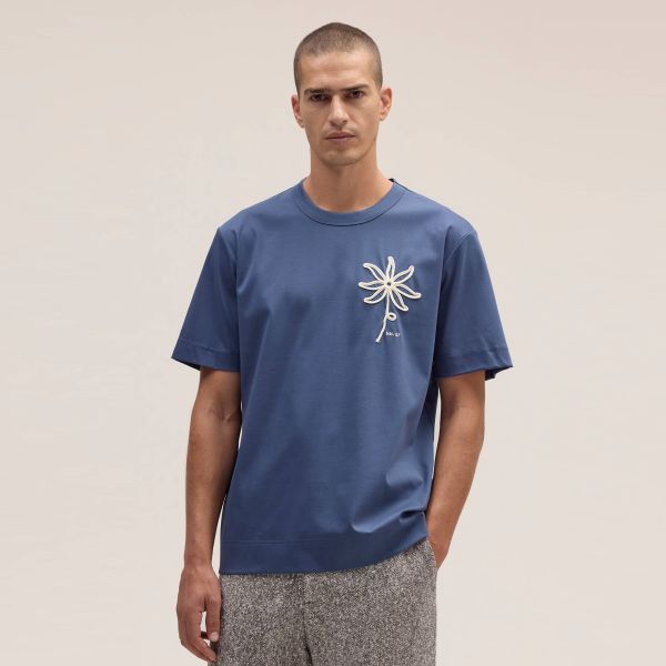 • T-Shirt mit gesticktem NN.07 'Flower'-Logoaufdruck auf der Brust.
