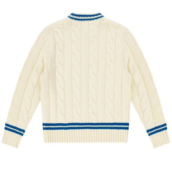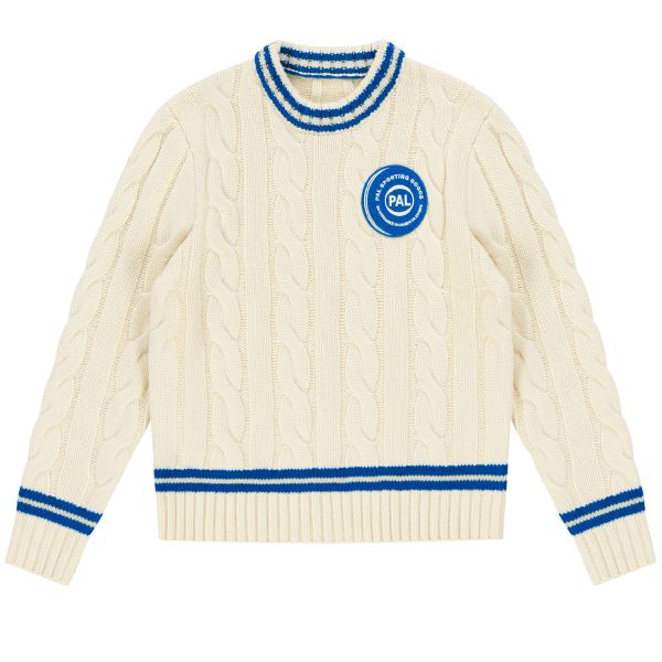 PAL Sporting Goods Bye Cable Knit Wool Cricket Pullover Off White/Blue