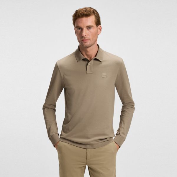 Paul Langarm Poloshirt Dunkelbraun
