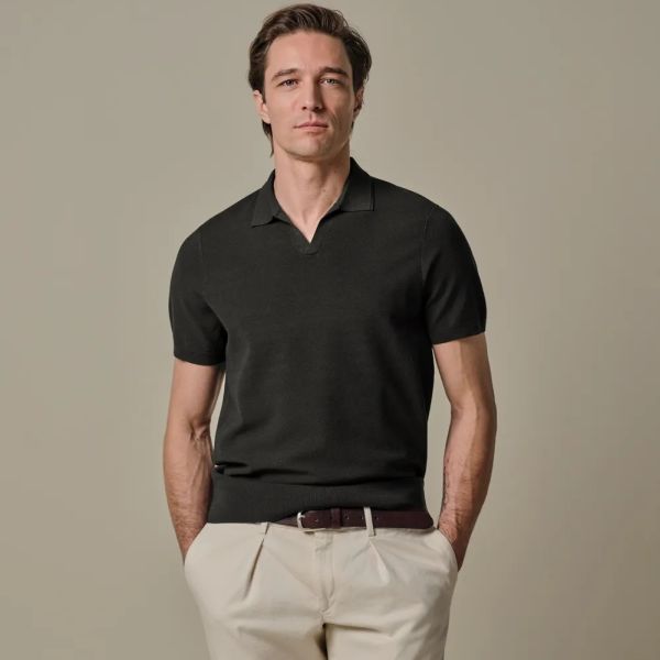 Luxury Open Collar Poloshirt Dunkelbraun