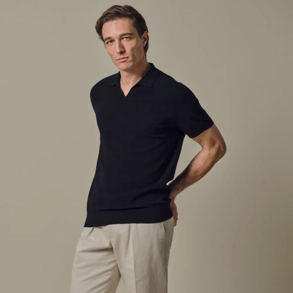 • Das Poloshirt von Profuomo in der Farbe navy ist aus Lyocell, Baumwolle, Polyamid und Seide gefertigt.
