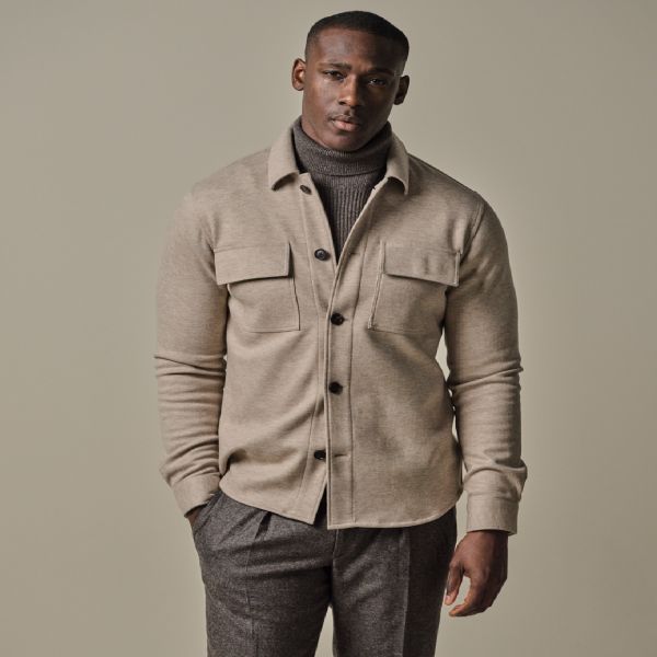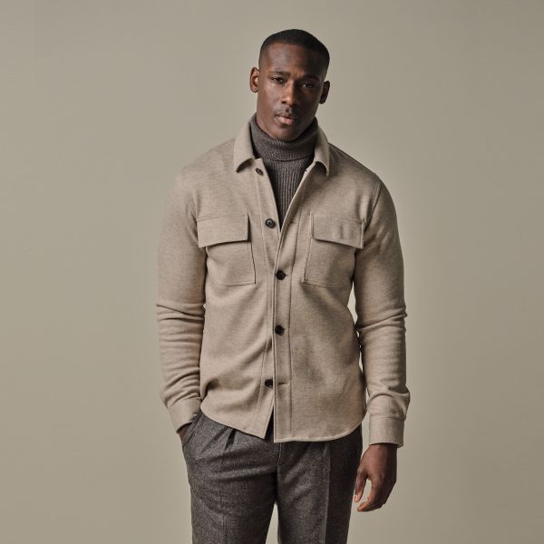 Profuomo Wolle gestricktes Überhemd Beige